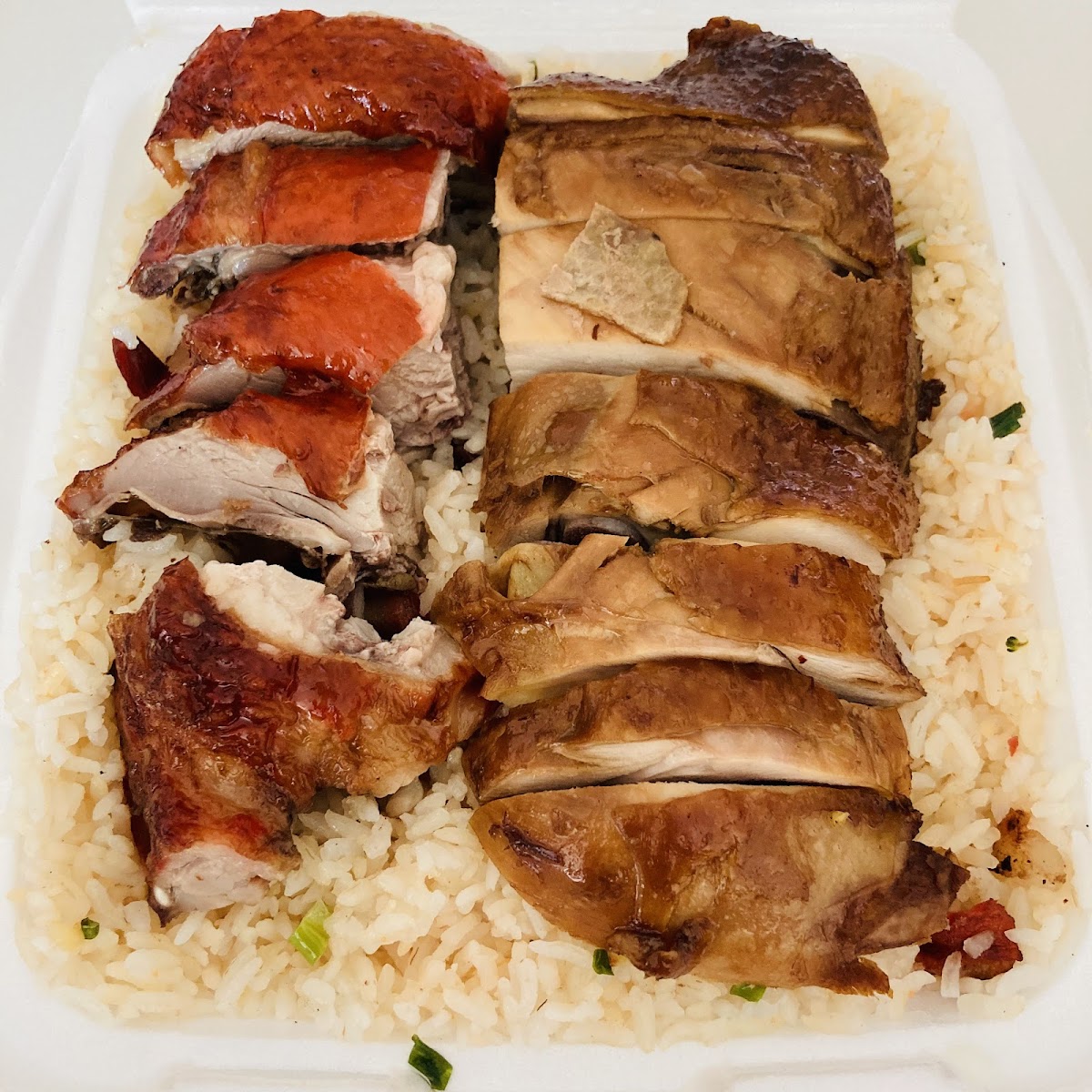 Got the fried duck and chicken w rice combo. I love soup so I also ordered the blossom egg drop soup. They were delicious. I'm definitely coming back.